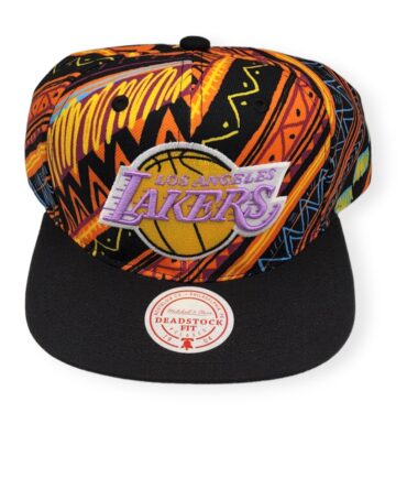 Mitchell & Ness Los Angeles Lakers Game Day Pattern Deadstock Black Adjustable Snapback Hat Cap