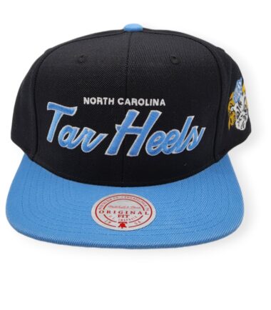 Mitchell & Ness North Carolina Tar Heels Team Script 2.0 Black/Light Blue Adjustable Snapback Hat Cap