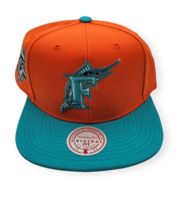 Mitchell & Ness Florida Marlins Hometown Coop Orange/Teal Adjustable Snapback Hat Cap
