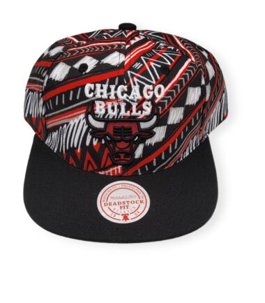 Mitchell & Ness Chicago Bulls Game Day Pattern Deadstock Black Adjustable Snapback Hat Cap