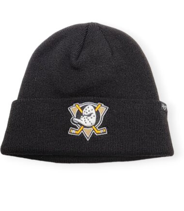’47 Anaheim Ducks Authentic Raised Cuffed Black Knit Beanie Cold Weather Hat