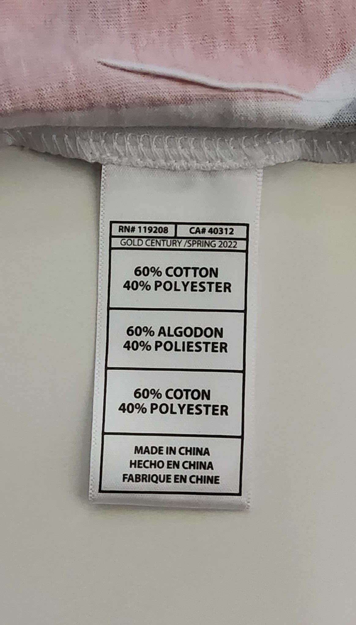 Material: 60% Cotton, 40% Polyester