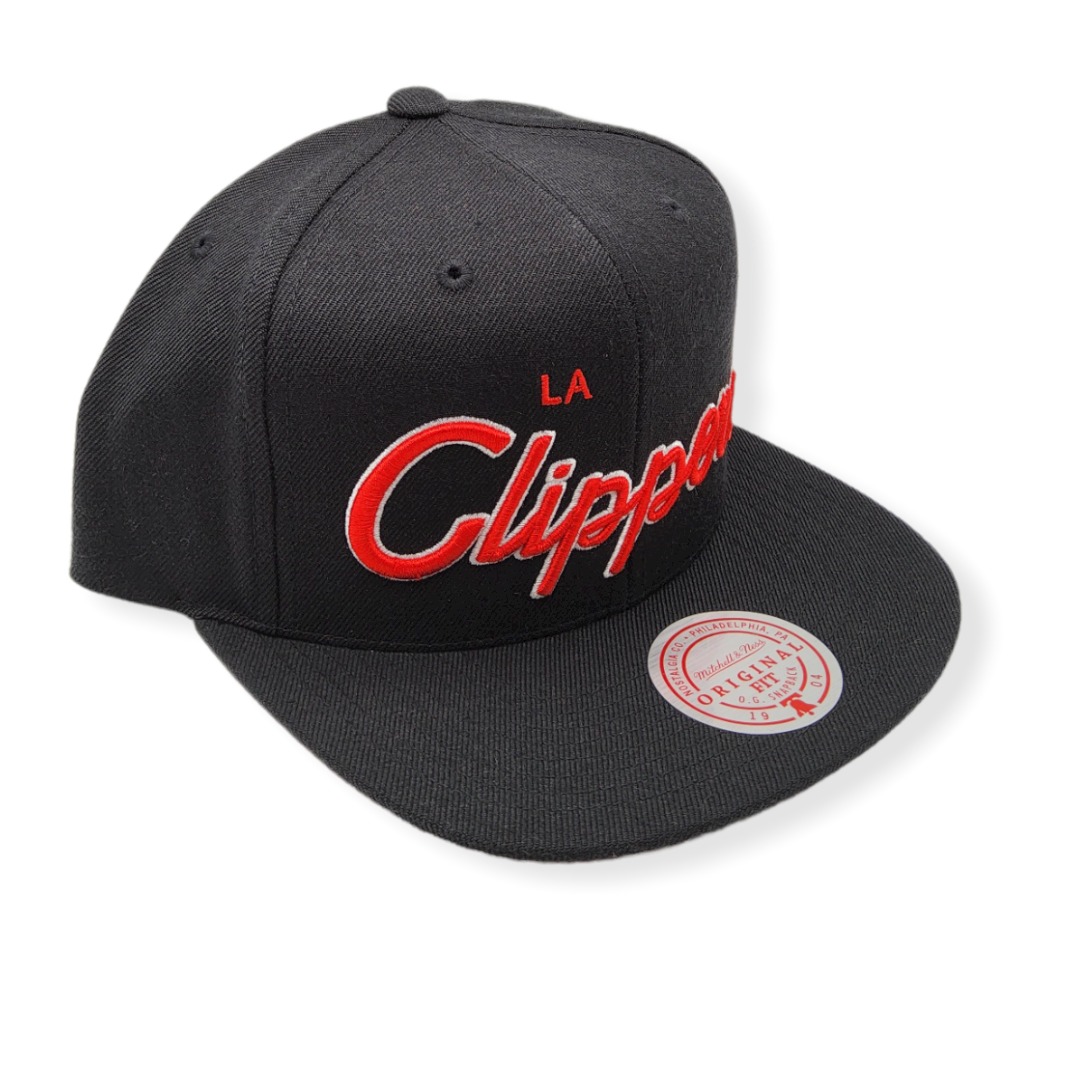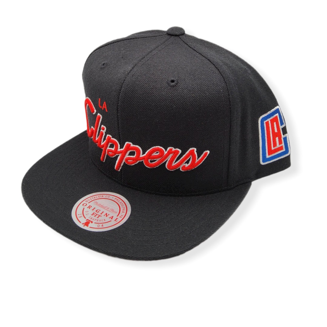 Mitchell & Ness Los Angeles Clippers XL Script Black Adjustable Snapback Hat Cap