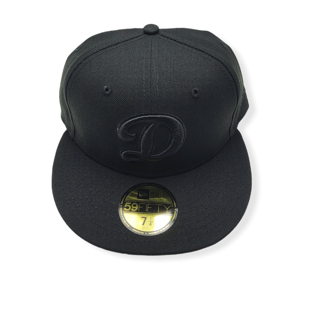 New Era Los Angeles Dodgers 59Fifty Black/Black D Logo Fitted Hat Cap Size 7 3/8